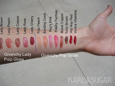 >karla.. i just had to say THANK YOU for this. givenchy isn’t a very popular MU brand, but i am mad about it, and you bothered to swatch their glosses !!! thank you x one million.