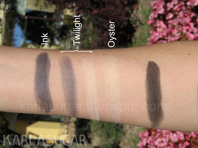 By the time I got to the end of my arm, though, I started feeling that the duos contained less-good versions of some lovely singles. I swatched Twilight between Ink and Oyster — neither shade seemed as pigmented or smooth as the original.
