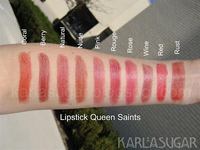 Lipstick Queen Saint Lipstick: Saint Coral, Saint Berry, Saint Natural, Saint Nude, Saint Pink, Saint Rouge, Saint Rose, Saint Wine, Saint Red, Saint Rust