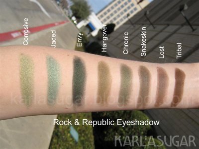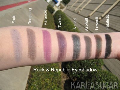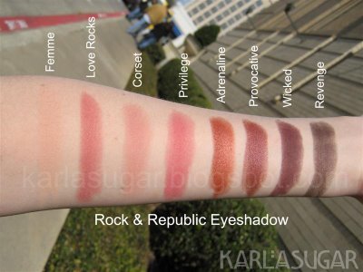 For ease of reference and comparison, I put all the Rock & Republic eyeshadow swatches into one post. (It’s also now a quick link in the “Hot Topics” section in the right-hand navigation.)